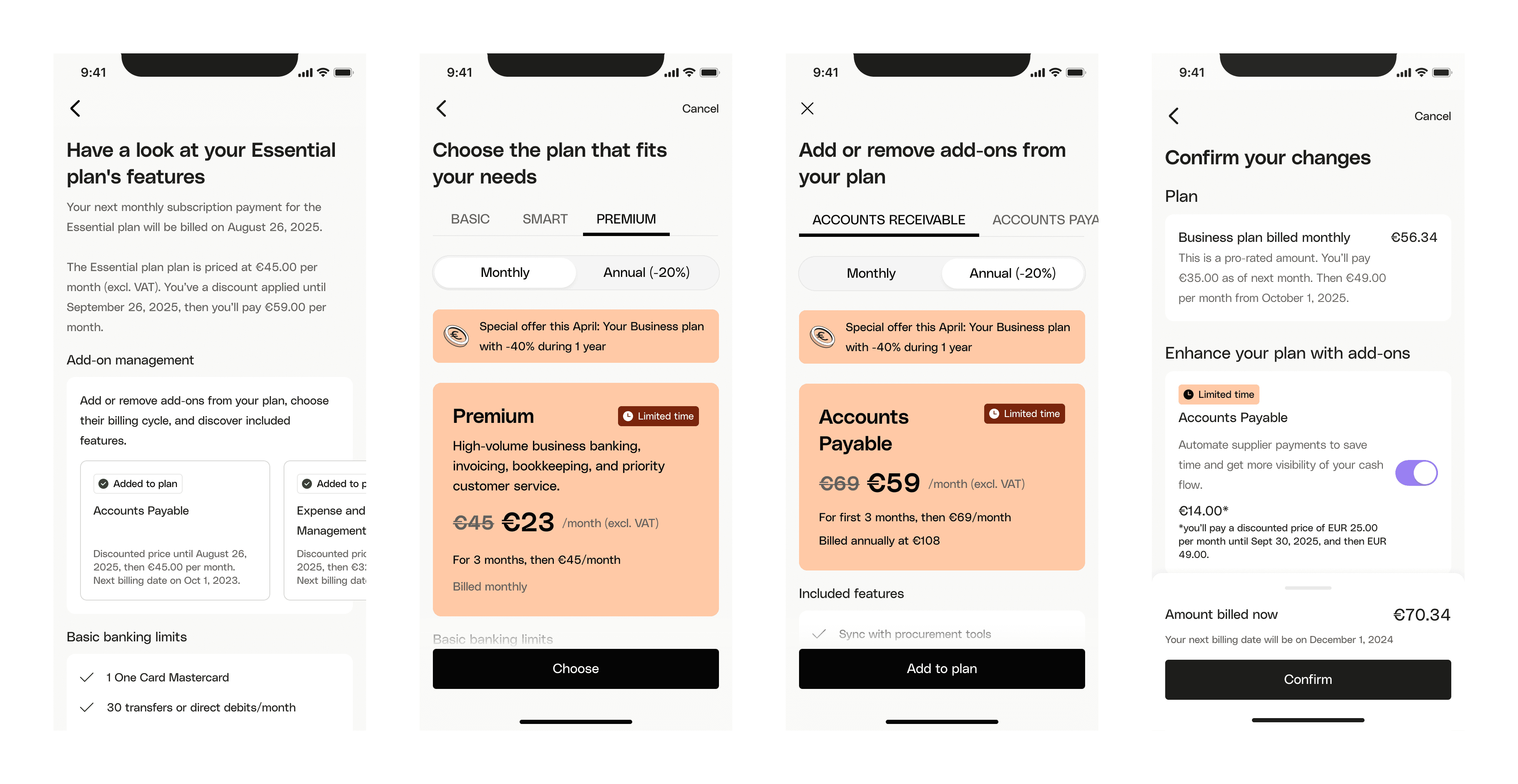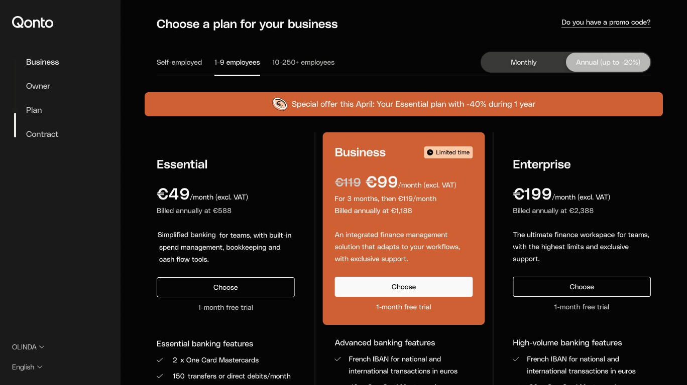 Qonto reserved strikethrough text formatting to show annual vs. monthly savings. This UX pattern constraint prevented the company from displaying promotional discounts with clear before/after pricing, limiting transparency and reducing promotional effectiveness.